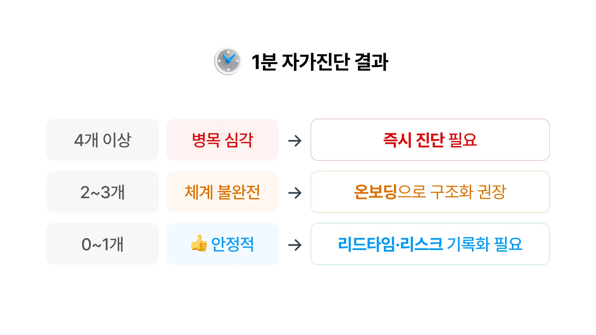 2~3개 해당 → 😟 체계 불완전 → 온보딩으로 구조화 권장